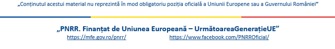 Apelul de proiecte este gestionat de MINISTERUL INVESTIȚIILOR ȘI PROIECTELOR EUROPENE, în calitate de coordonator de reforme și/sau investiții pentru Planul Național de Redresare și Reziliență, finanțat din fonduri europene prin Planul Național de Redresare și Reziliență al României.